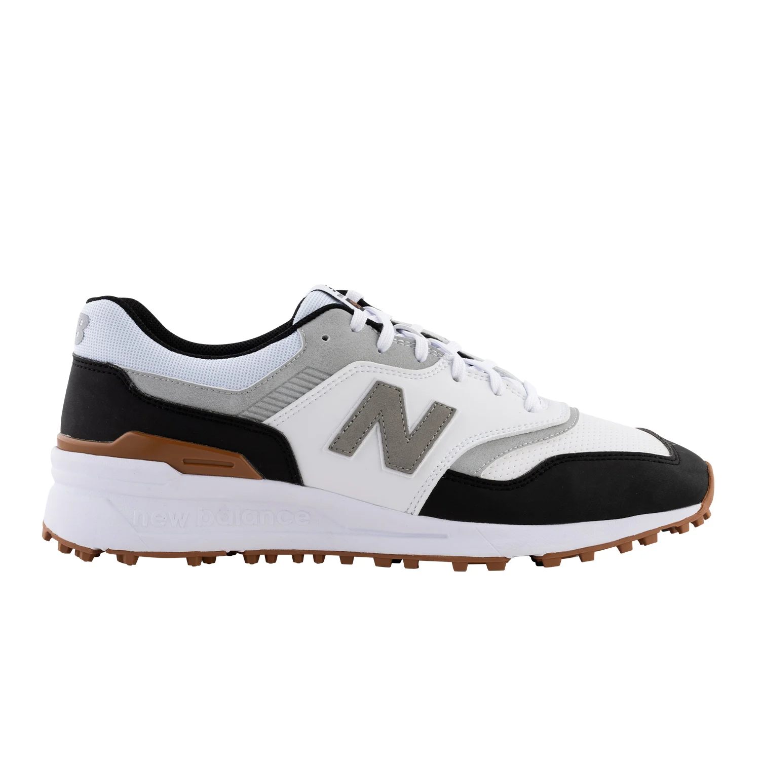 Laadukas golfkenkä, jossa on selkeälinjainen siluetti, klassinen NB-brändäys sekä vedenpitävä mikrokuitunahkainen päällinen.